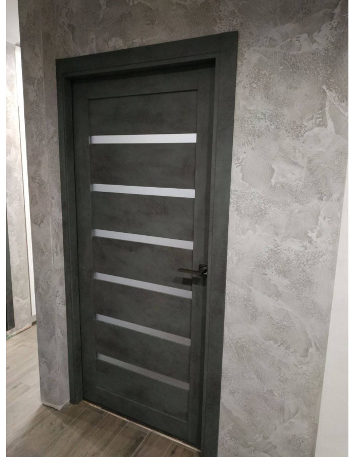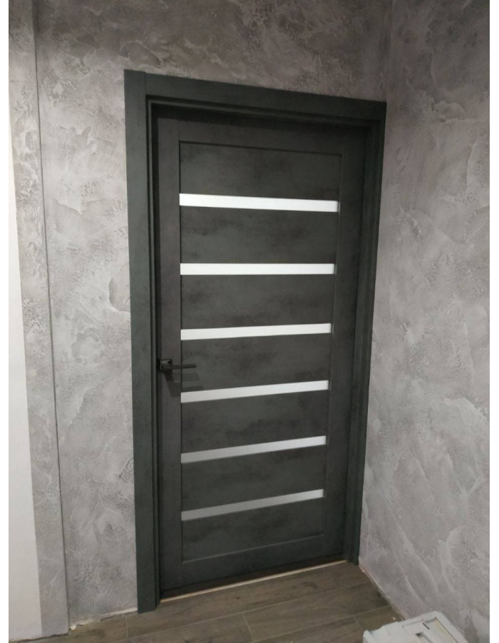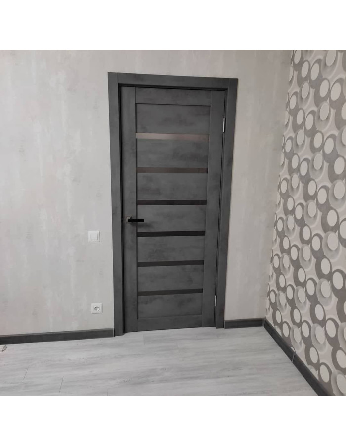 Межкомнатная дверь RE44 Темный камень, со стеклом графит